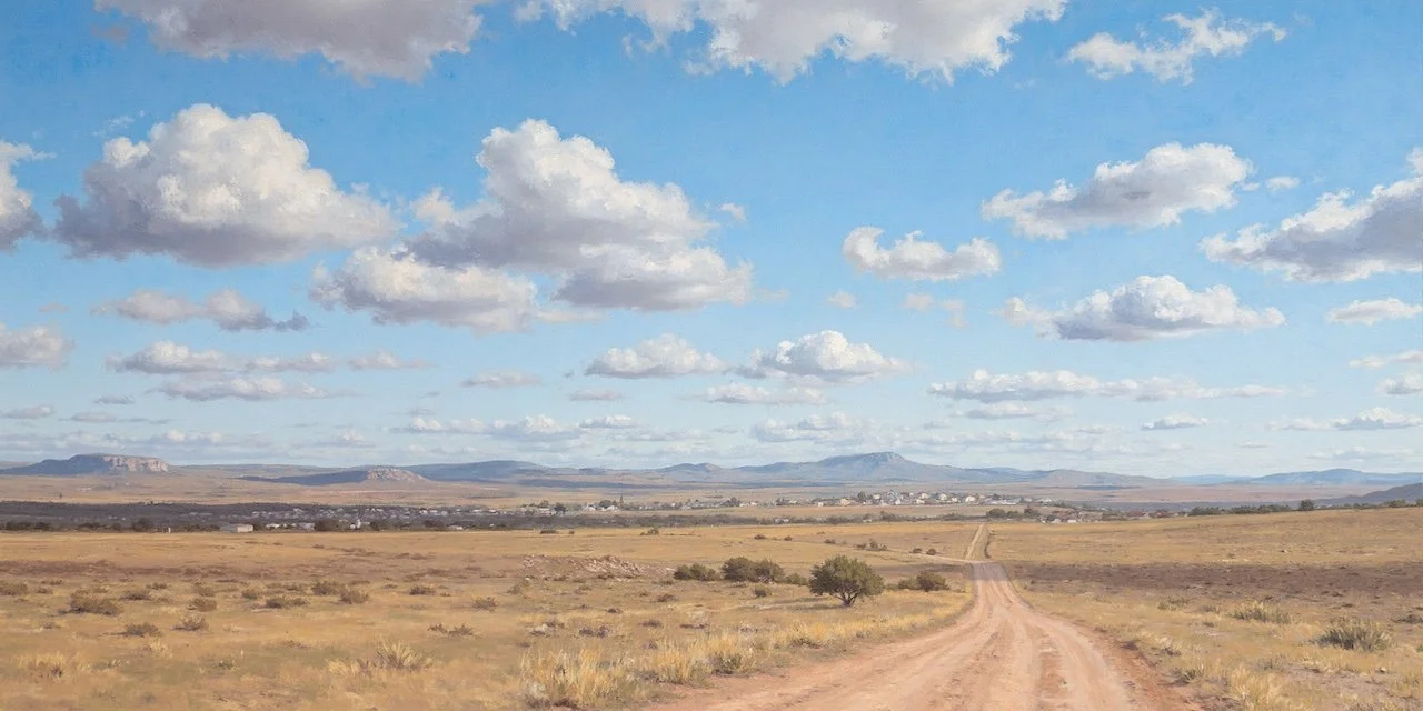 The Land of Forgotten Time is the inaugural work in my Living Landscapes Series, each piece in the collection is designed to move gently, subtle shadows shifting on the ground, skies that drift quietly overhead, and the barely perceptible breath of wind across a forgotten field.
